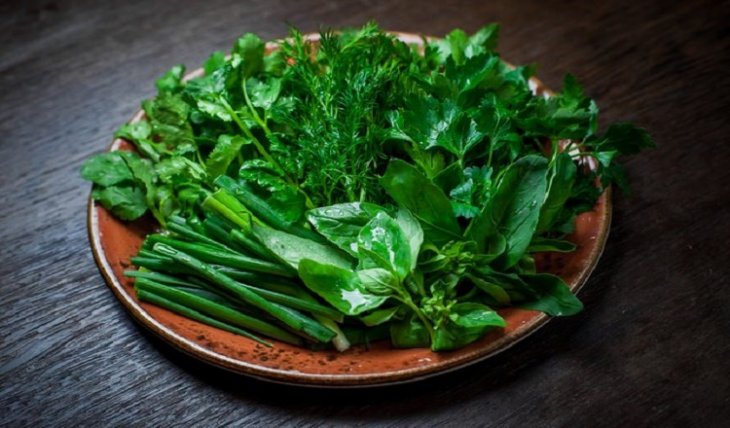 Обов'язково слід включити в свій літній раціон зелень. У ній містяться вітаміни С, А, В, нікотинова і фолієва кислоти, солі кальцію, калій, залізо і фосфор. Зелень допомагає стабілізувати тиск, налагодити травлення і уникнути поганого самопочуття на сонці.