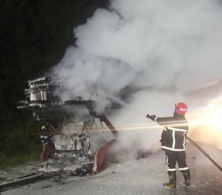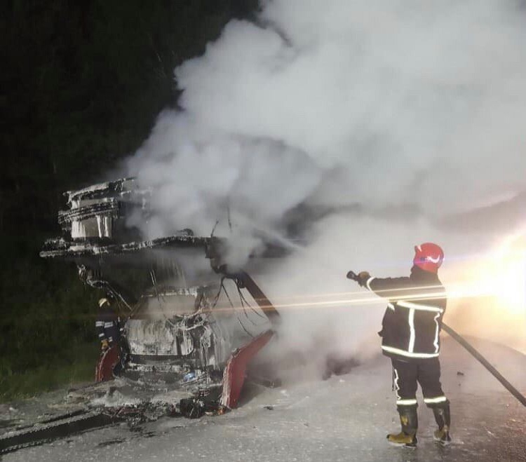 Вночі, 14 липня, поблизу м. Яворів на автодорозі Львів-Краковець виникла пожежа в автомобілі з лафетою, на якій знаходилось 4 авто.