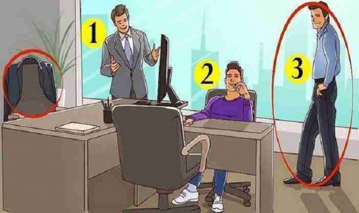 Правильна відповідь: Власника будь-якого робочого місця видають його особисті речі на столі чи кріслі. Тому достатньо звернути увагу на піджак на стільці, а також визначити, кому з чоловіків його бракує.Тому працівник №1 точно не підходить, адже він у джинсах та у кофтині. Працівник №2 вже має на собі піджак, тому саме працівнику №3, який лише у сорочці, належить цей кабінет.