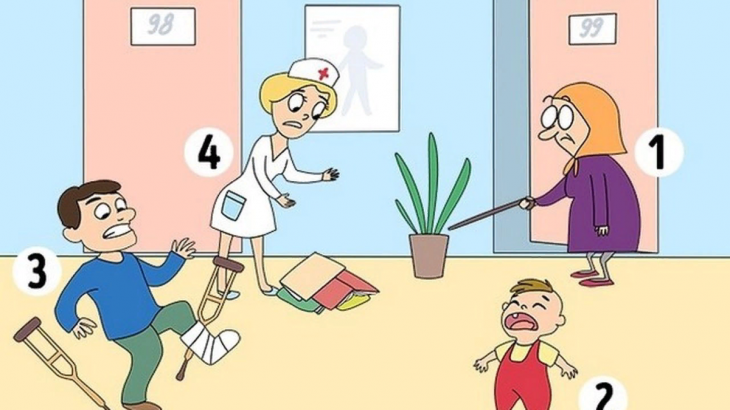 Подивіться наступну картинку. На ній зображено чотири людини в біді: плаче дитина, сліпа бабуся, чоловік з ногою в гіпсі і медсестра, у якої документи впали на підлогу. Кому з них ви будете допомогати в першу чергу?