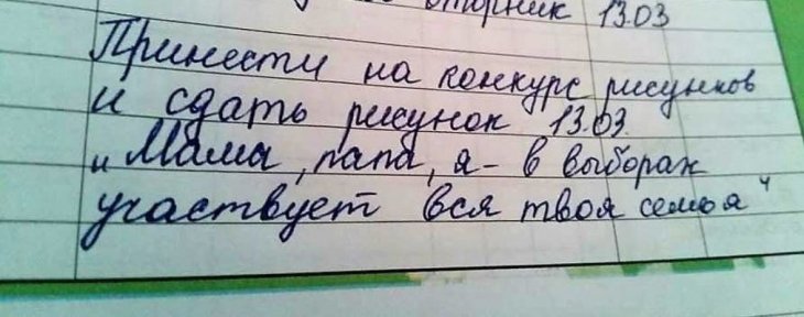 Дітей змусили записати в щоденник завдання про участь у конкурсі. Малюнок для конкурсу потрібно принести в школу до 13 березня.