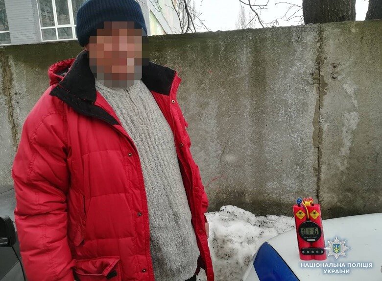 У середу вдень, 14 березня 58-річний киянин з іграшковою бомбою зайшов у будівлю одного з підприємств у Києві і зажадав від працівників покинути приміщення під загрозою вибуху.