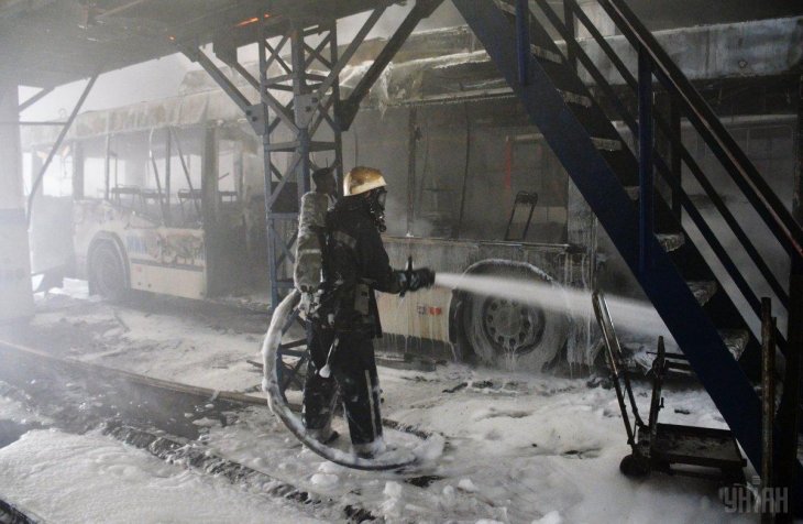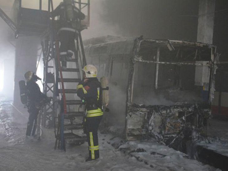 Пожежники, які виїхали на місце, виявили, що загорівся тролейбус, який перебував на обслуговуванні.