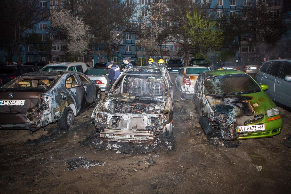 У Дніпрі на стоянці горіли п'ять авто: ледь не загинула родина