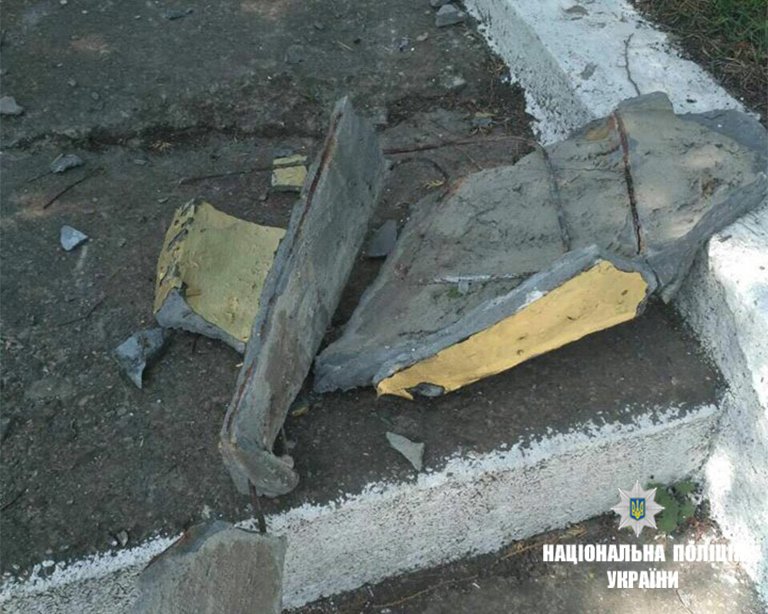 З їх слів, коли виносили пам’ятник вдруге, не втримавши його у руках, випустили. Оскільки погруддя виготовлено із метало-бетонної конструкції з порожниною усередині то конструкція розбилася.