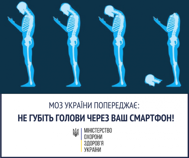 "Якщо ви активний користувач смартфона, зверніть увагу на ці поради. Тримайте телефон на рівні грудей, підборіддя або очей, щоб мінімізувати нахил шиї і підтримувати оптимальне положення в спині. Намагайтеся міняти пальці, якими друкуєте текст або перегортаєте стрічку новин. Не розмовляйте по телефону, тримаючи його між вухом і плечем. Обмежте користування телефоном 20-хвилинними сеансами, між якими робіть короткі перерви, щоб відволіктися і зробити невелику зарядку. Робіть вправи для очей, щоб уникнути перенапруження і пересихання сітківки", - радить керівник МОЗ.