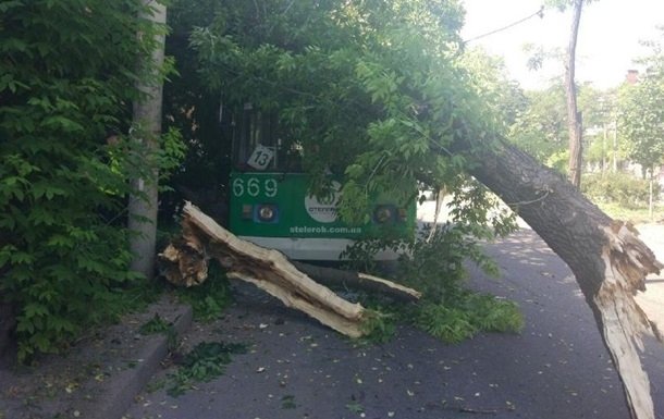 «У центрі Запоріжжя дерево звалилося на тролейбус, що рухався. У ньому знаходилися 15 пасажирів. Двоє з них отримали травми. У чоловіка вивихнуто плече, у жінки перелом стегна», - йдеться в повідомленні.