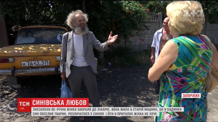 У Запоріжжі 92-річна жінка-інвалід чотири доби ночувала у старому авто. Коли їй стало гірше, вона вибралася звідти і лежала на землі, де її знайшли сусіди.