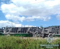 «На місці події працює слідчо-оперативна група. Попередньо встановлено, що машиніст потяга перевищив допустиму швидкість руху, в результаті чого вантажний потяг зійшов із колії. 12 вагонів потяга лягли на бік та ще у 12 відірвало ходову частину. На місці аварії хімічних та вогненебезпечних речовин не виявлено», - йдеться у повідомленні.