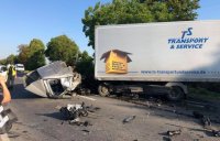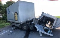 Біля Мукачева зіткнулися відразу три авто - VW Tiguan, VW Transporter та вантажівка, в якої знесло кабіну, пише "Mukachevo.net".