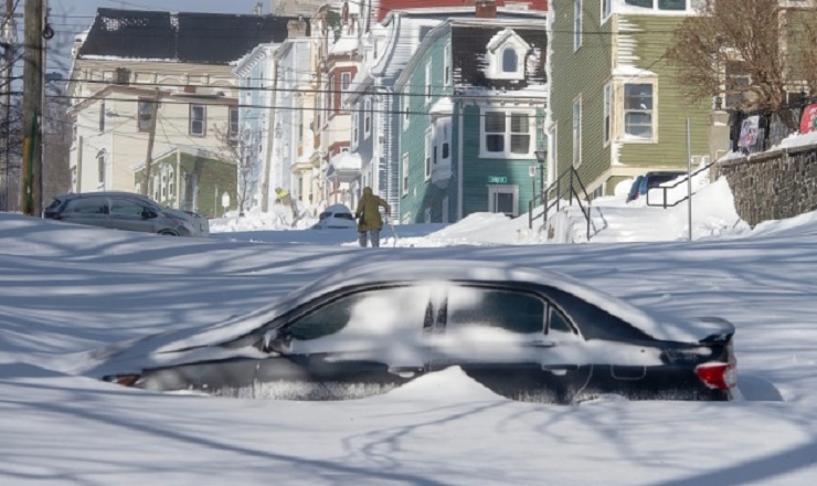 Через сніжний шторм десятки тисяч будинків на острові Ньюфаундленд були заблоковані, дороги перекриті, машини завалені снігом.