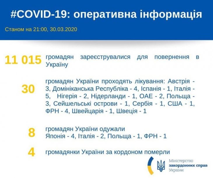 За кордоном від коронавірусу лікуються 30 українців — МЗС