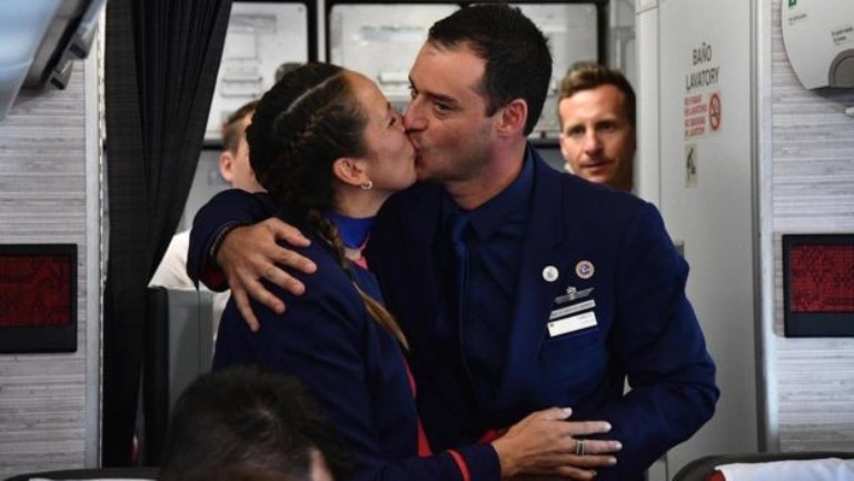 Папа Римський повінчав пару у літаку на висоті 11 тисяч метрів. Він провів для пари католицьку весільну церемонію. За свідка взяли боса авіакомпанії.