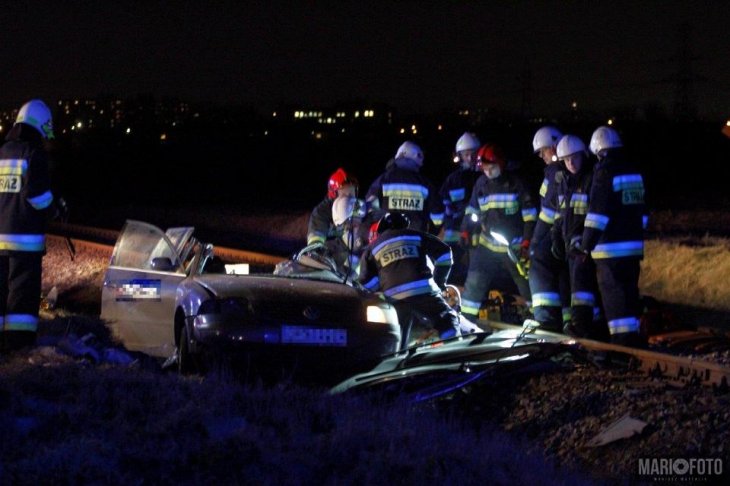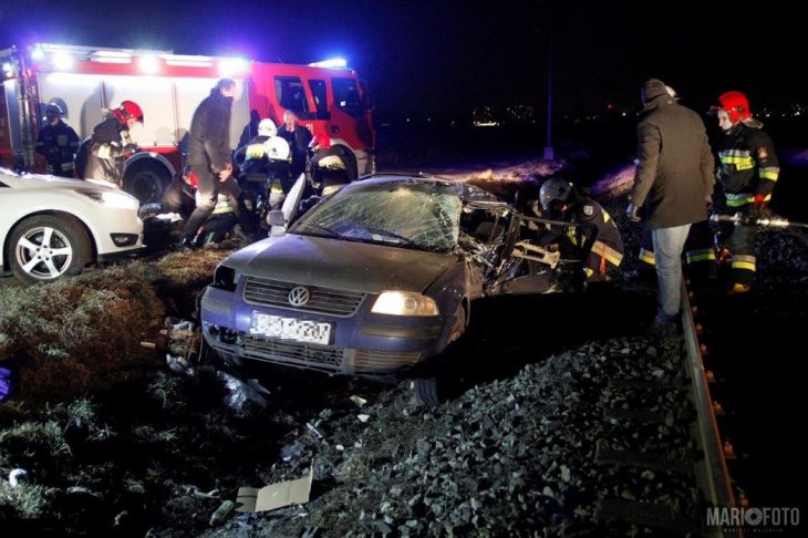 Як повідомляє черговий офіцер Державної пожежної охорони в Ополі, на незахищеному залізничному переїзді в Хмельовичах, Volkswagen Passat зіткнувся з автобусом.